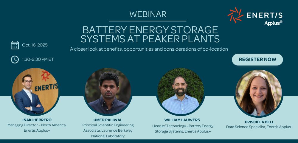 Join Iñaki Herrero, Managing Director – North America; William Lauwers, Head of Technology – Battery Energy Storage Systems; Umed Paliwal, Principal Scientific Engineering Assoicate, Lawrence Berkely National Laboratory; and Priscilla Bell, Data Science Specialist, on October 16, at 1:30 PM ET to explore key aspects of battery energy storage systems at peaker plants.
